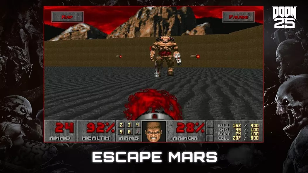 DOOM — legendary first-person shooter for Android devices, which was first released for the PC back in 1993. Even now, the game has not lost popularity, celebrates its 25th anniversary and was ported to Android devices. Various elements of DOOM later appeared in other action shooters, and are actively used today.